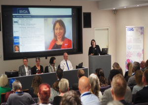 The strength of the new BIVDA team was displayed for all to see at the front of the auditorium: New Chief Executive Helen Dent, Head of Policy, Programmes and Compliance, Paul Fisher, Treasurer Jag Grewal and Chair Helen Tucker, President Angela Douglas and Head of Regulatory Strategy, Professor Mike Messenger.