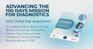 Advancing the 100 Days Mission for Diagnostics: 2025 Global Gap Assessment is a report developed by the International Pandemic Preparedness Secretariat (IPPS) in collaboration with the Brown University Pandemic Center and FIND, the global alliance for diagnostics.