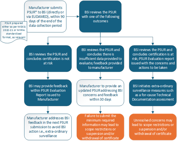 When a manufacturer has provided a single PSUR document to meet the PSUR obligations for the EU and Great Britain regulations, BSI will undertake a combined review of the PSUR.